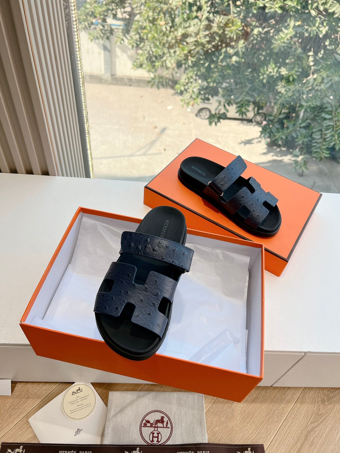 HM Chypre Sandal Liberty Blue Ostrich Leather 202804