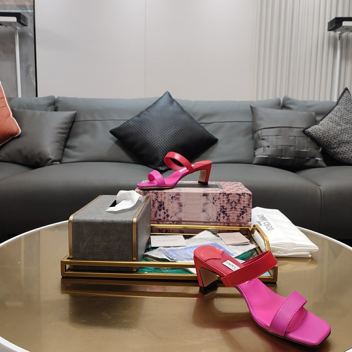 Jimmy 25 Kyda Nappa Sandals 55MM Fuchsia and Pink Leather 240108