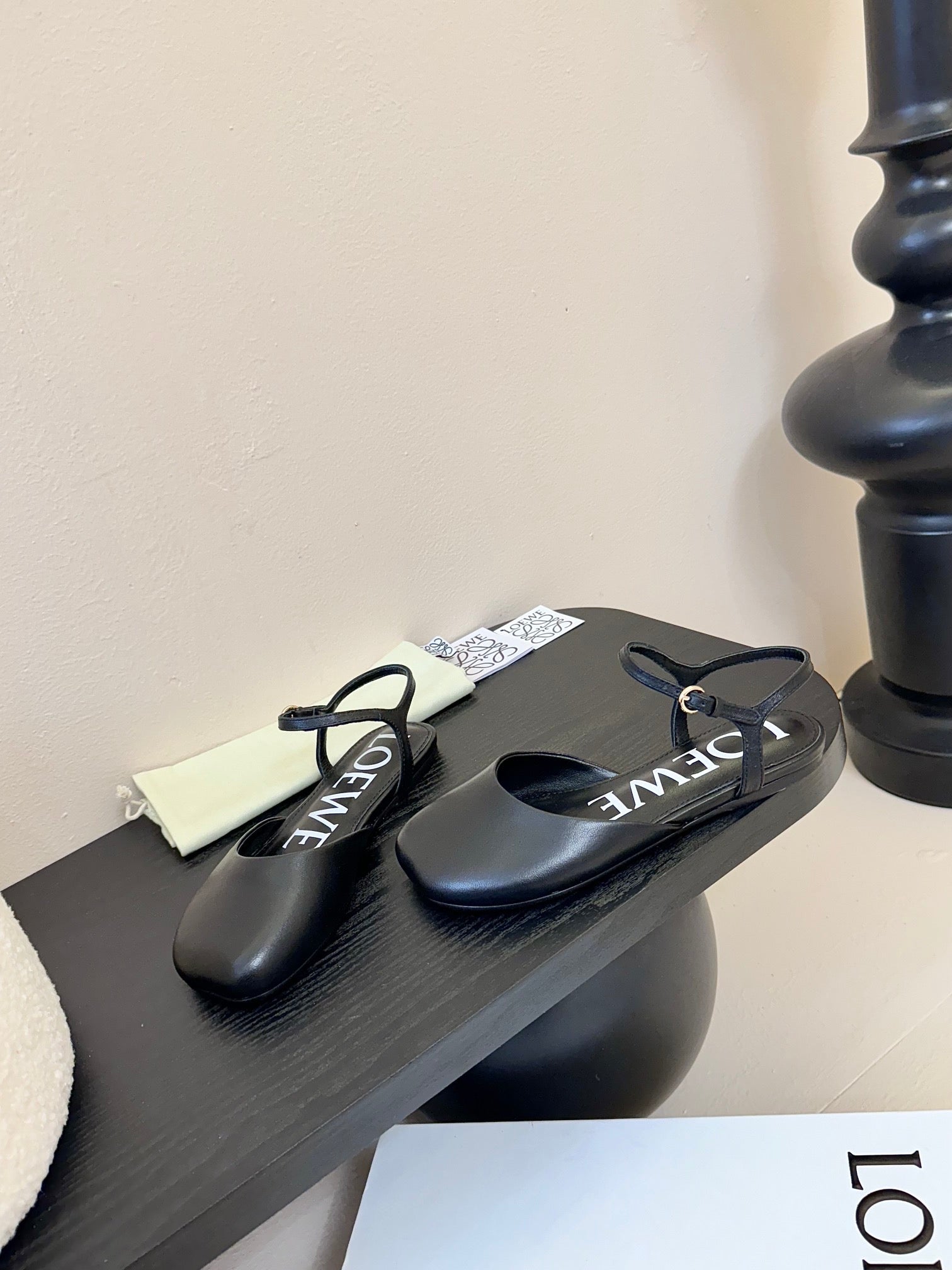 Loewe 25 Toy Ankle Strap Ballet Flat Black Calfskin 309171