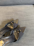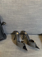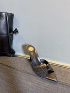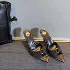 LOLA HIGH MULES IN BLACK SMOOTH LAMBSKIN AND DRAPED JERSEY