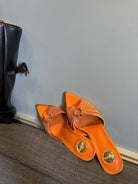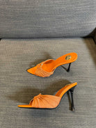 LOLA HIGH MULES IN TANGELO ORANGE SMOOTH LAMBSKIN AND DRAPED JERSEY