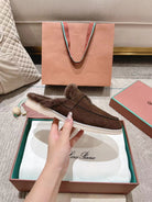 LP Charms Walk Babouche Loafer Bottele Brown Suede With Rabbit Fur Lining 206245