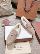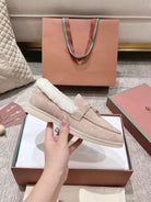 LP Summer Charms Walk Loafers Light Brown Beige Mix White Suede With Rabbit Fur Lining 206250