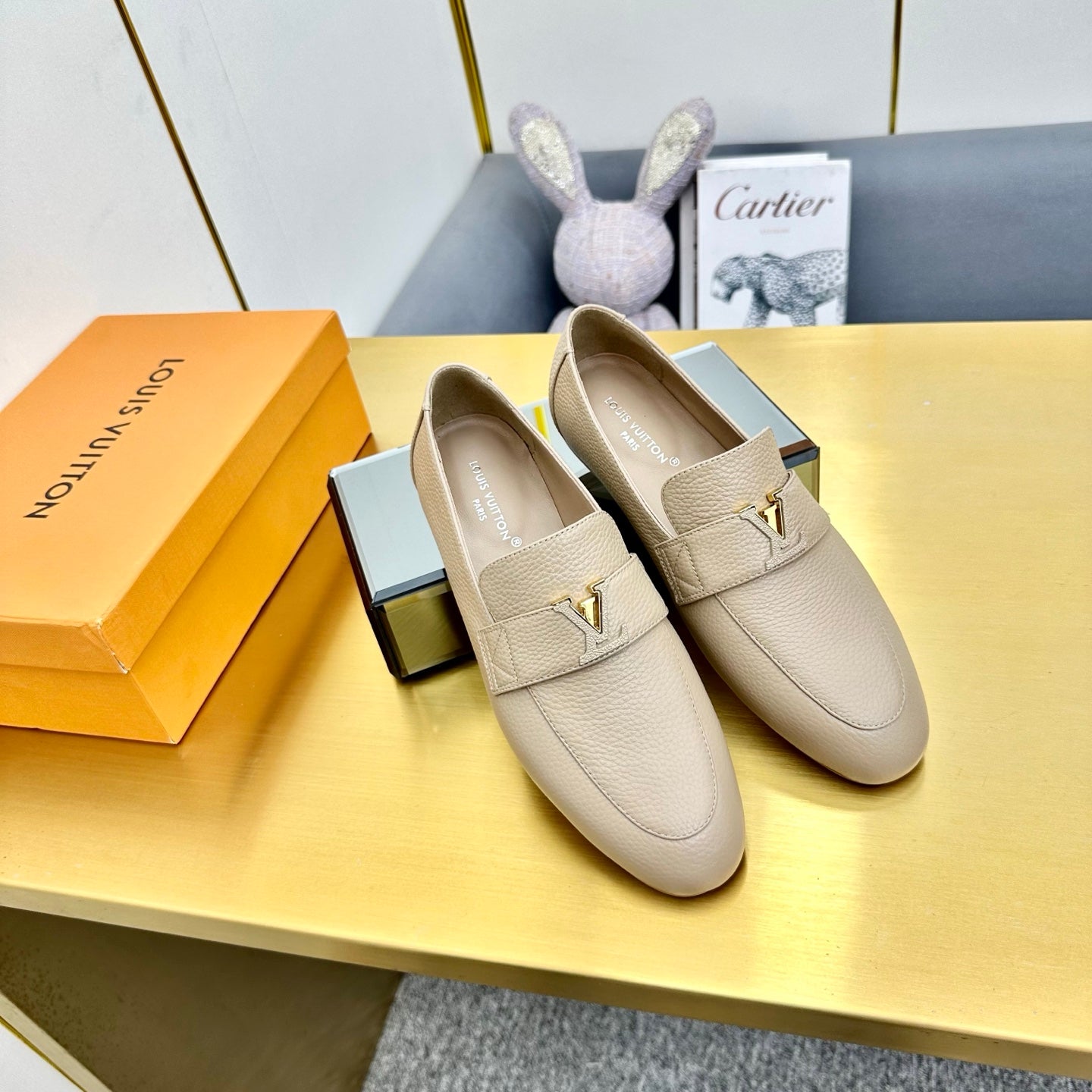 LV 25C Capri Loafer Cream Wrinkled Cowhide 219931