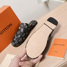LV 25C Flat Mule Black Monogram Denim Fabric 218314