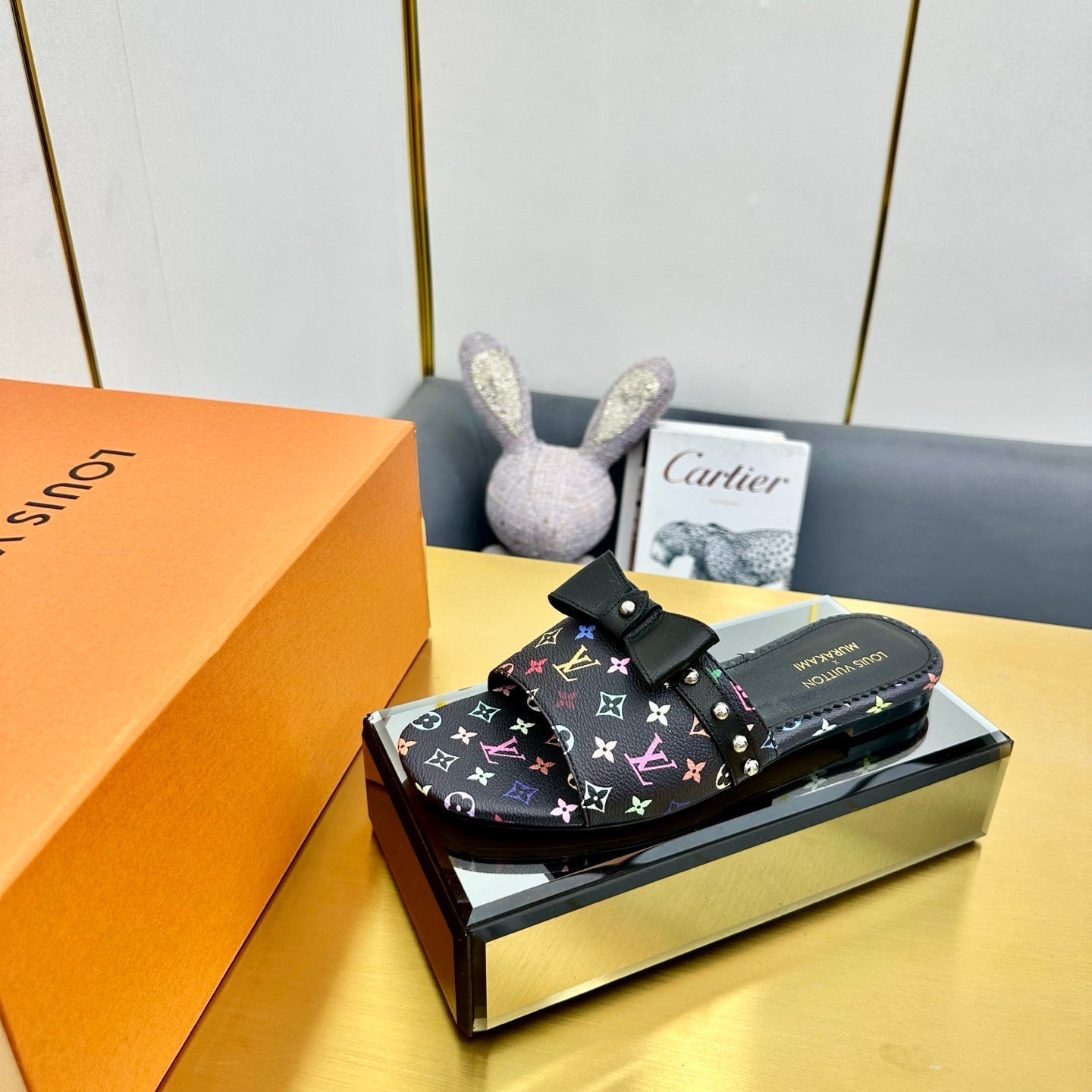 LV 25C LV x TM 6AM Flat Mule Black Bow Black with Monogram Multicolore Leather 219950