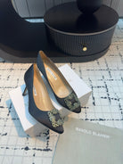 Manolo Blahnik Hangisi Embellished Pumps Black Satin Leather