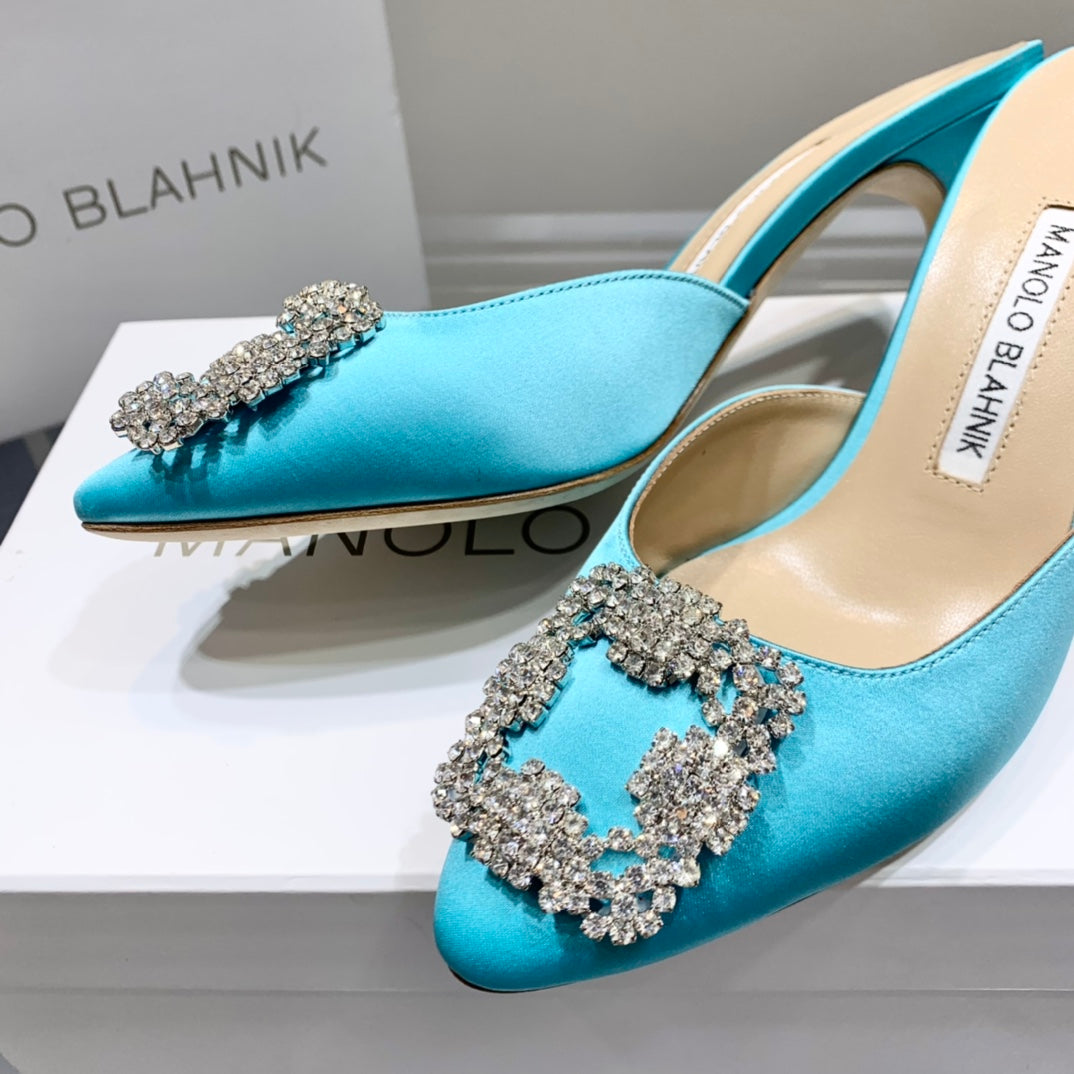 Manolo Buckle Mules 7cm Eletric Blue Silk 208017