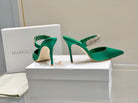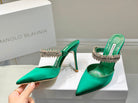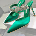 Manolo Mules Diamond Buckle Green Silk Satin 218813