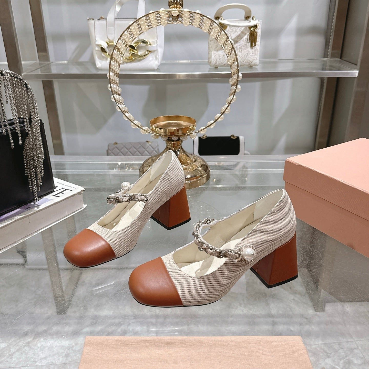 Miu 25C Mary Jane 75MM Beige Cream Mix Brown Fabric 235367