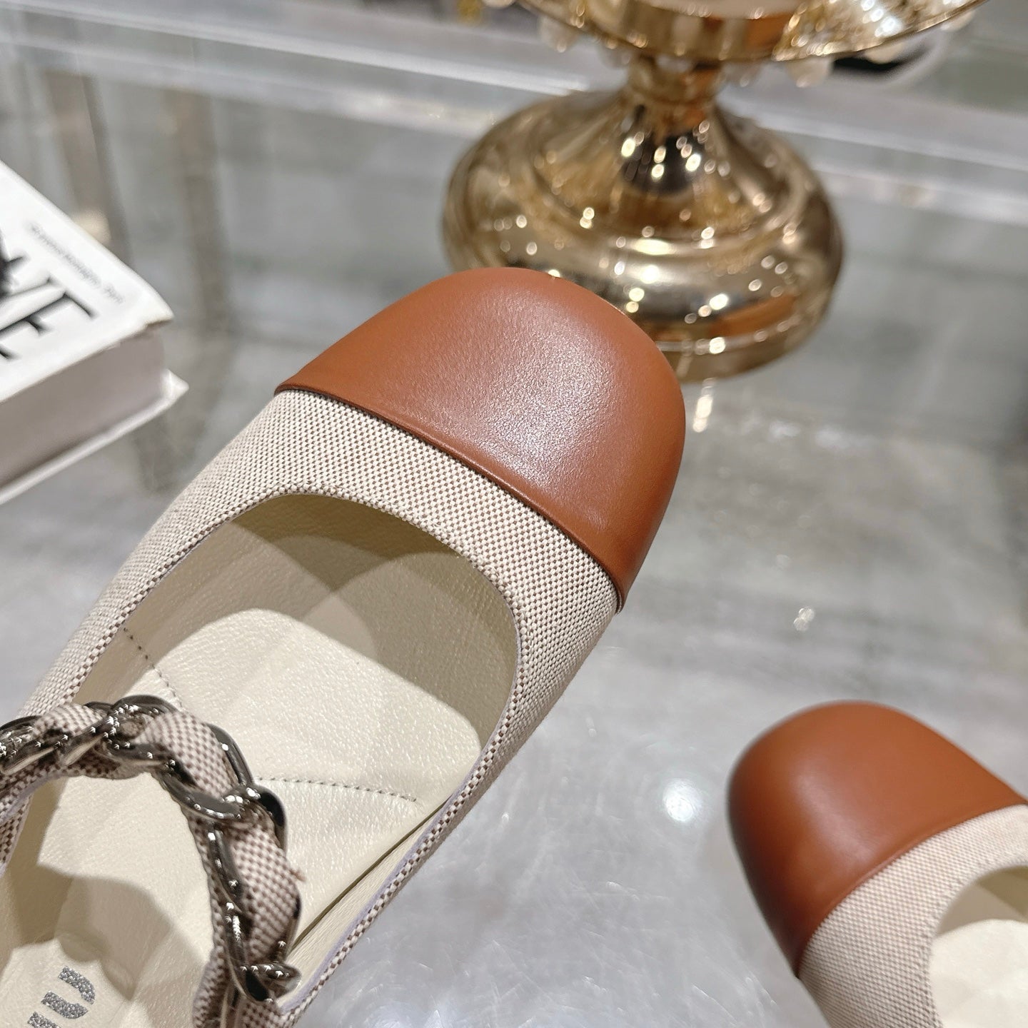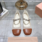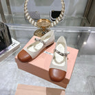 Miu 25C Mary Jane Flat Beige Cream Mix Brown Fabric 235369
