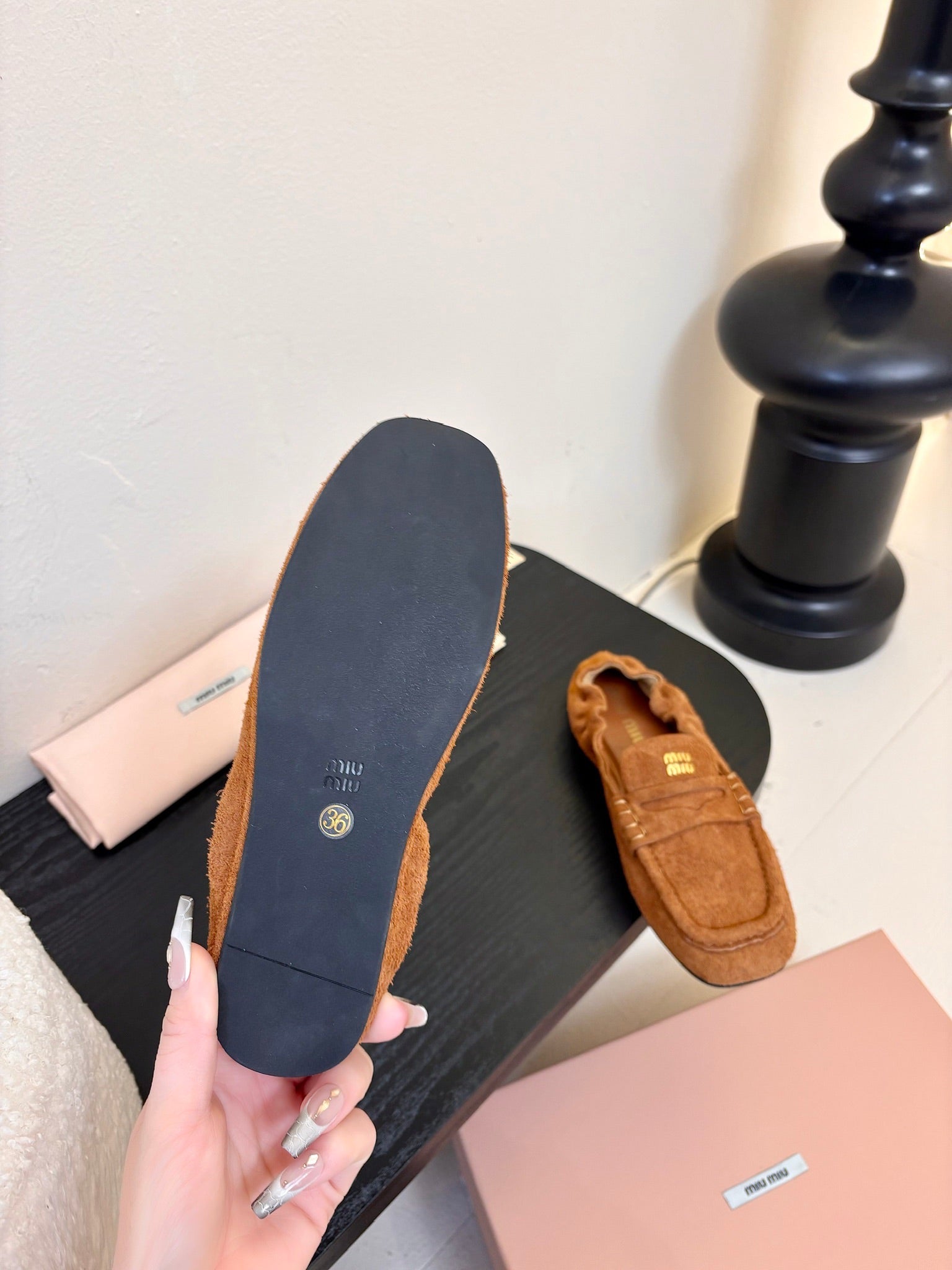 Miu 25C Ruches nappa Loafers Copper Brown Suede 235807