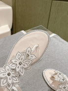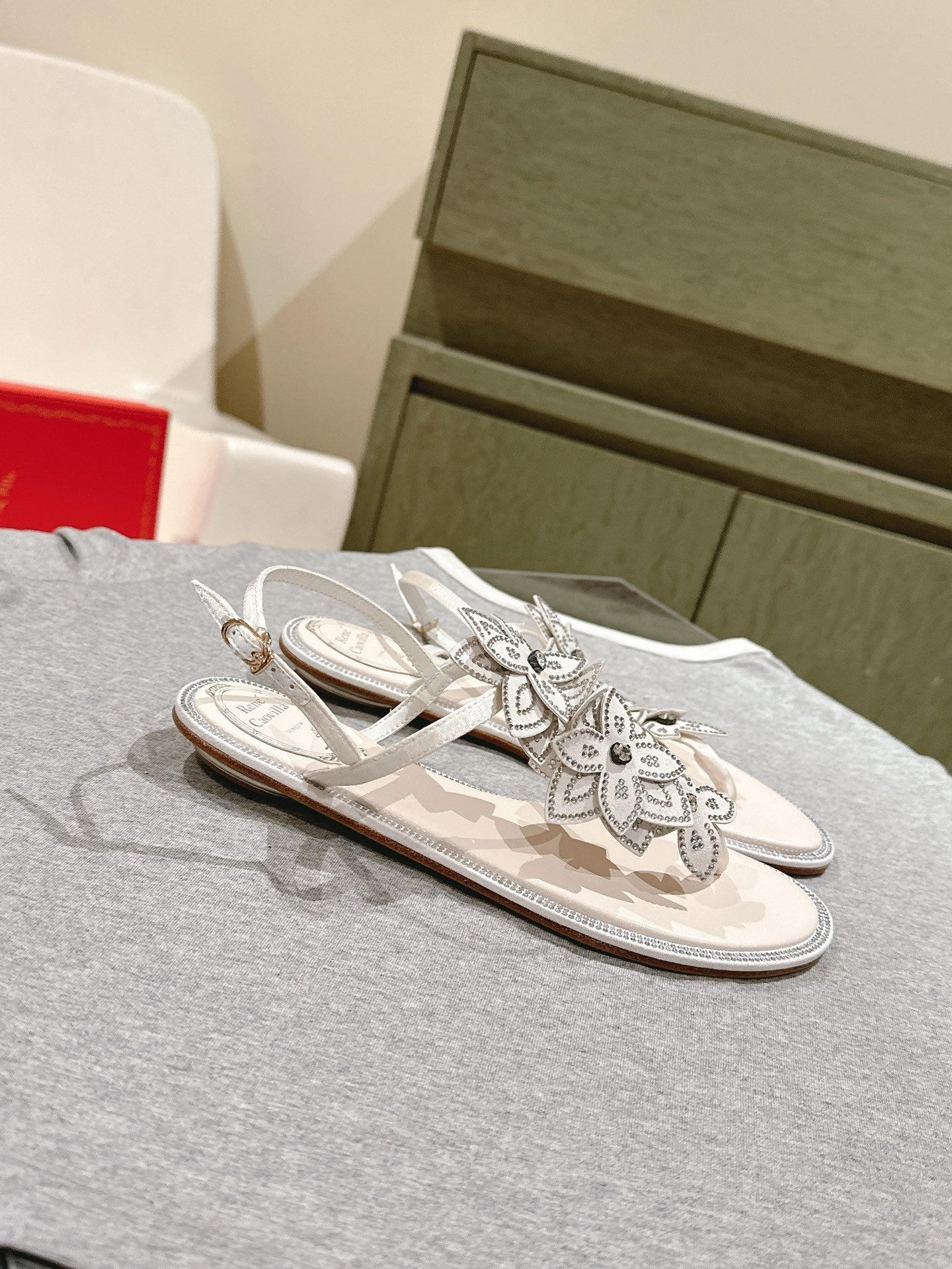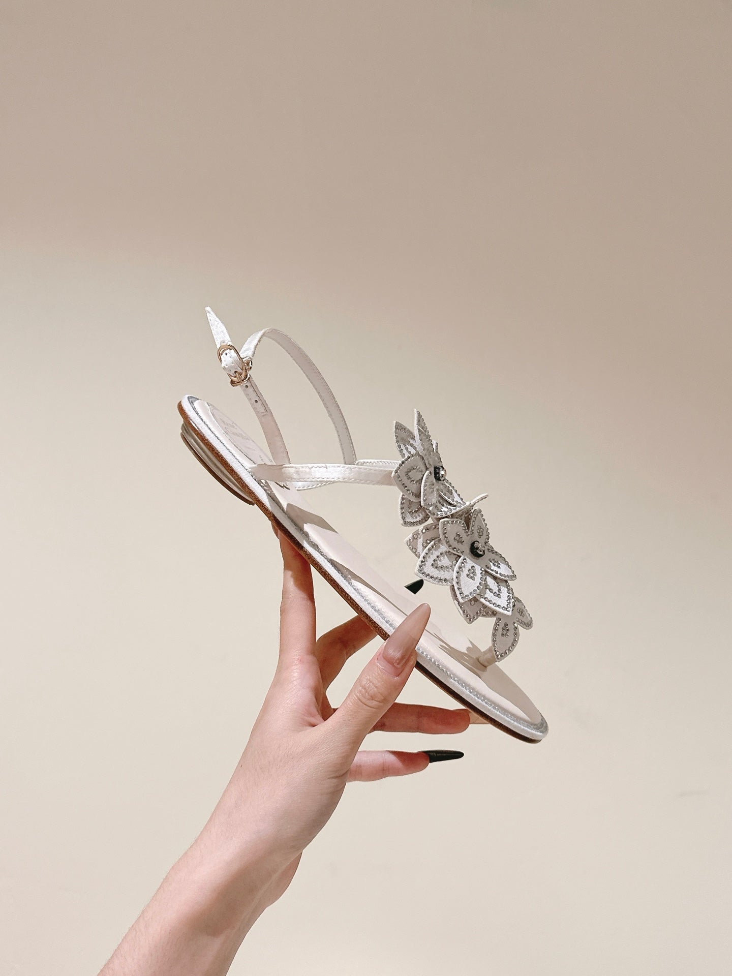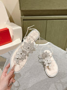 RC 25 Flat Sole Flower Thong White Silk Rhinestones 268063