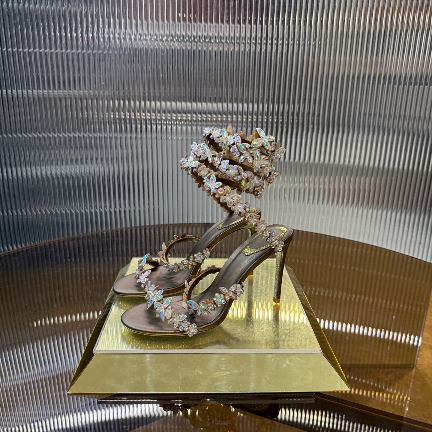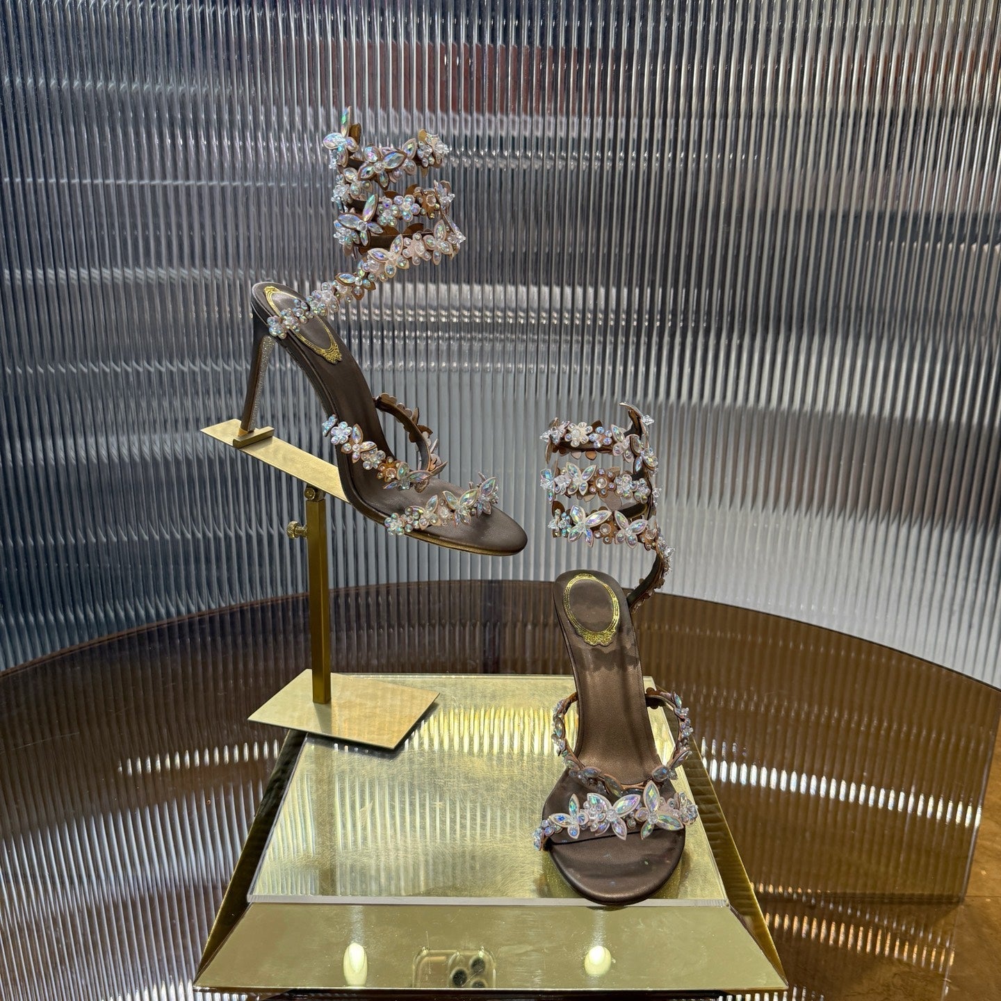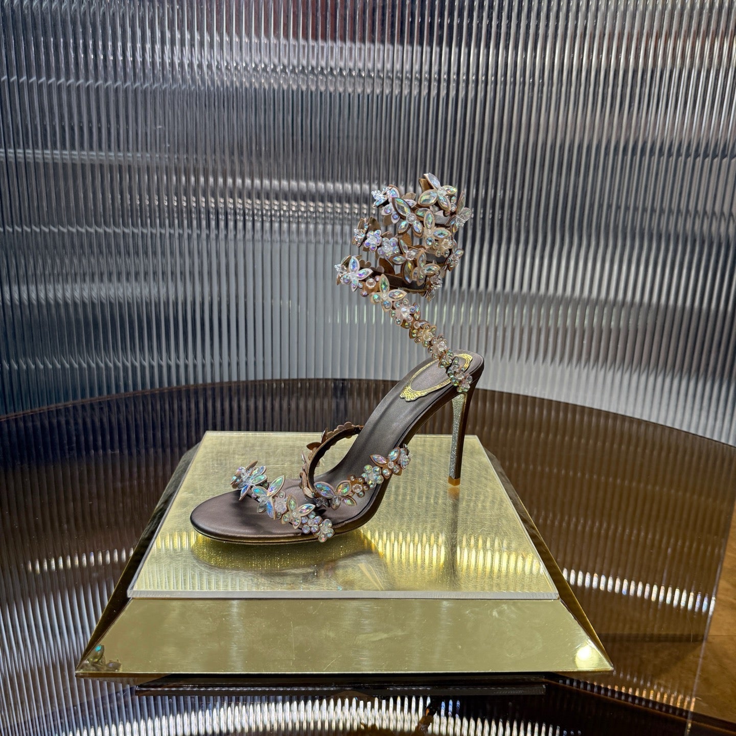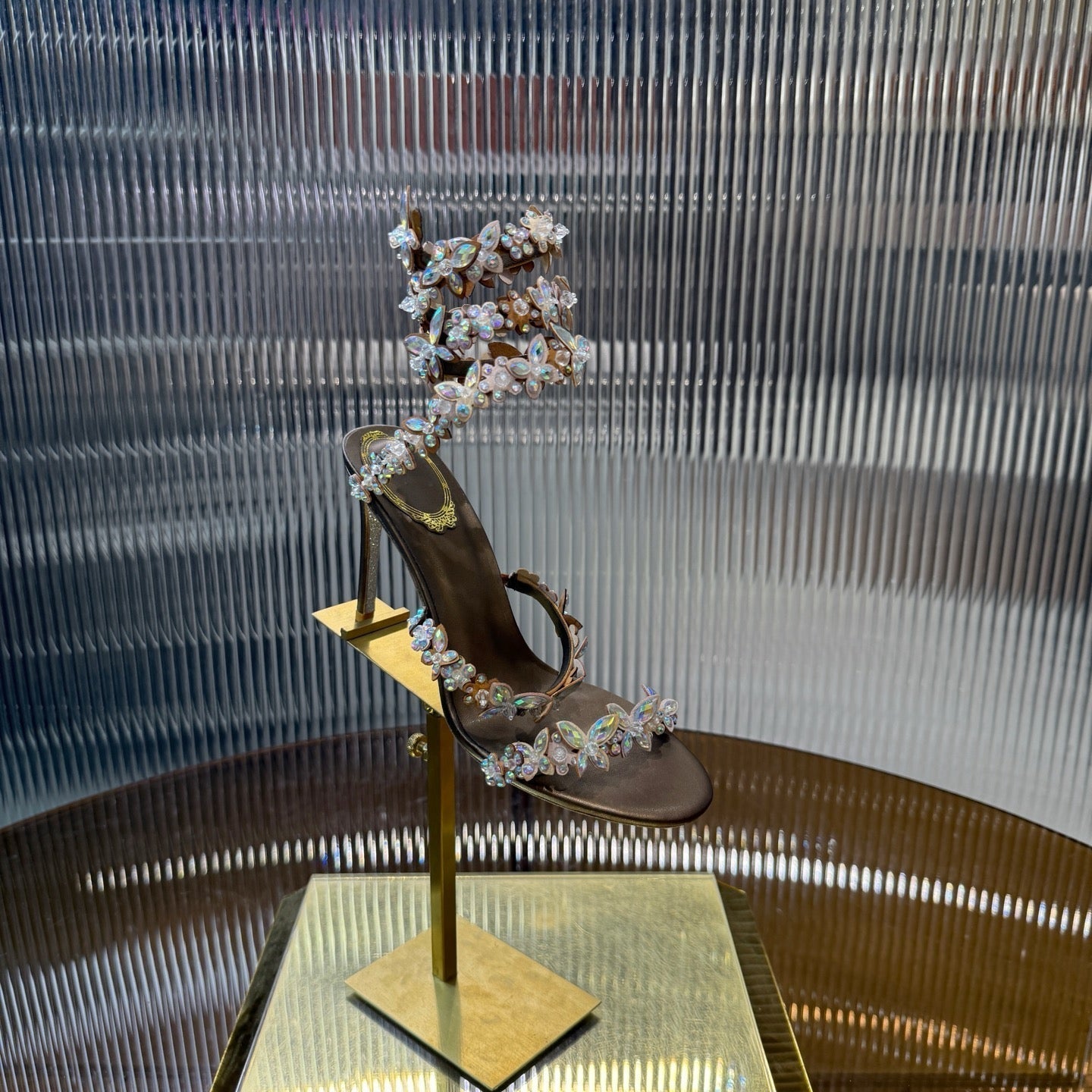 RC 25C Butterfly Flower Sandals Brown Sheepskin Rhinestones 310660