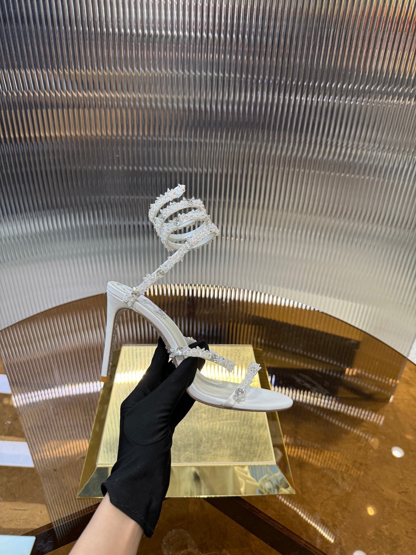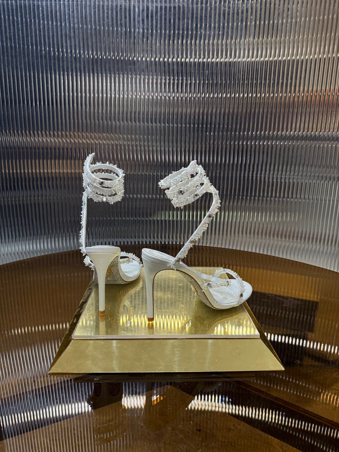 RC 25C Crystal Diamond Sandals White Sheepskin Rhinestone 275780