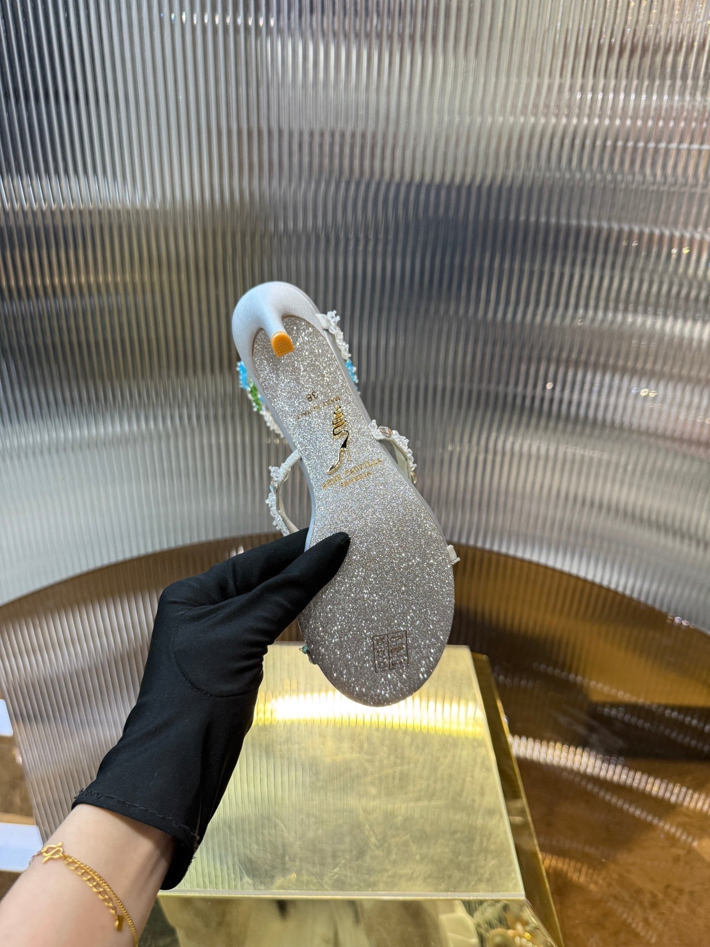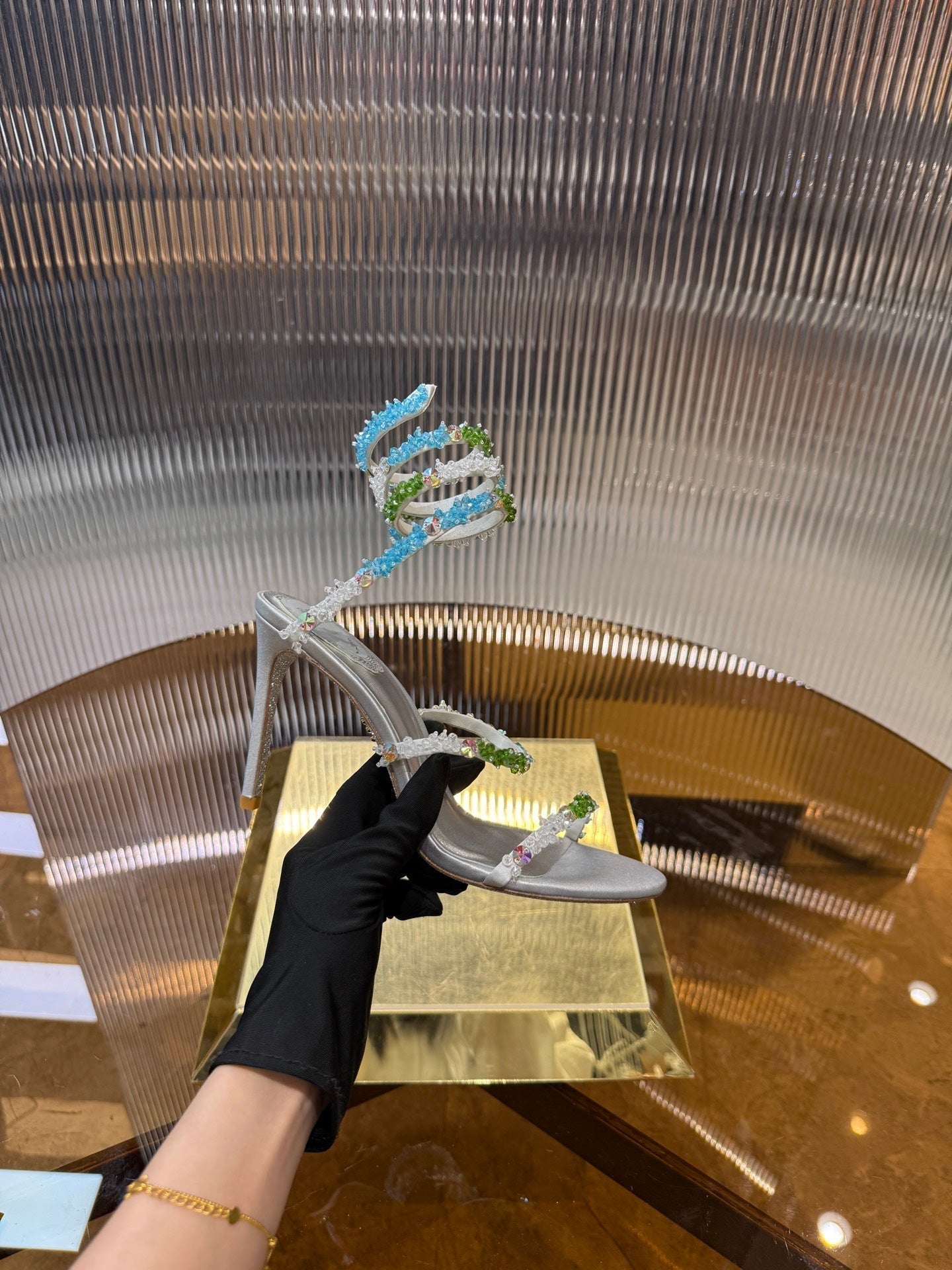 RC 25C Multicolor Diamond Sandals Silver Sheepskin Rhinestone 275782