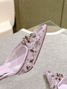 RC 25C Slingback Diamond High Heeled Purple Silk Rhinestones 268076