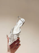 RC 25C Slingback Flat Shoe White Silk Rhinestones 268075