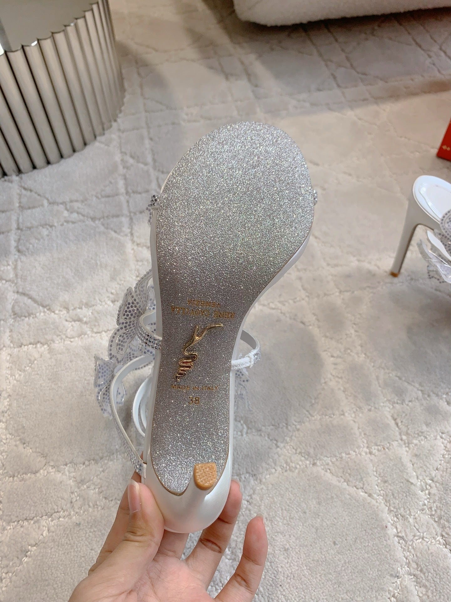 RC Flower Sandals Silver Sheepskin Rhinestones 328468