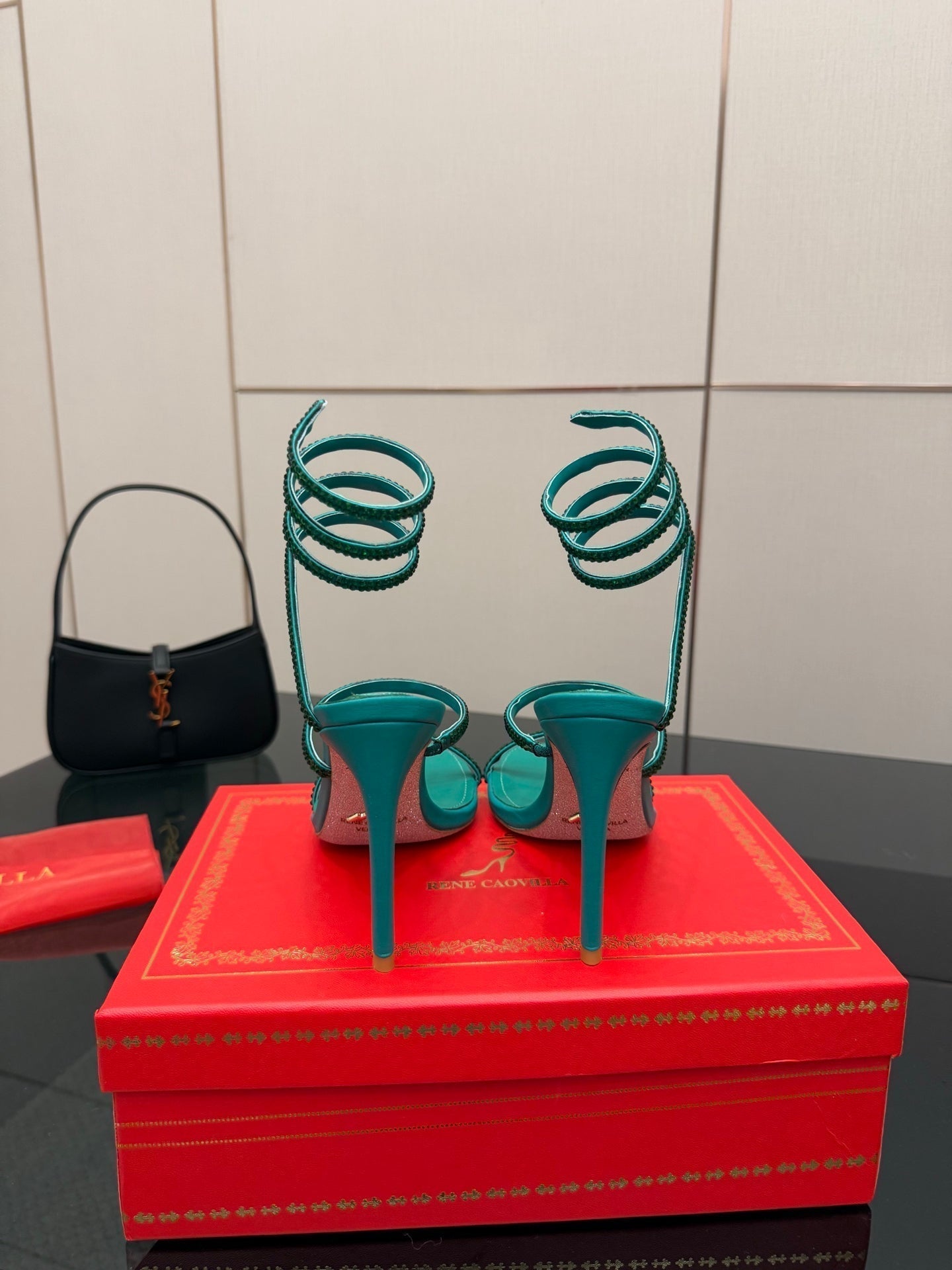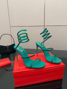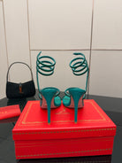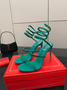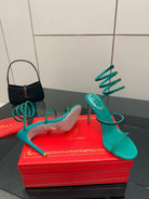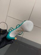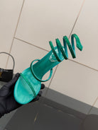 RC Sandals 9.5cm Dark Green Silk Creole Crystal Diamond 302608