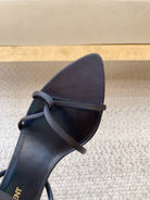 STRAPPY MID HEEL SANDALS IN BLACK SILK