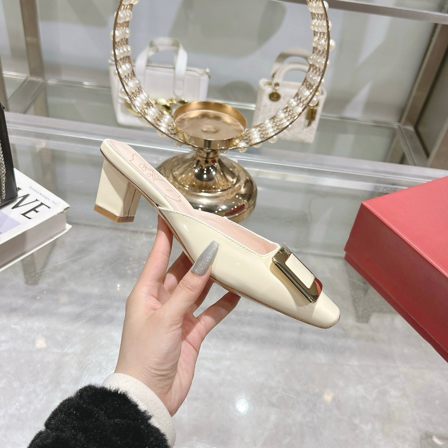 Viv 25 Mules Buckle Beige Patent Leather 235350