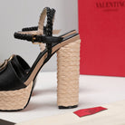 VT 25 Platform Sandals Black Cowhide Espadrilles 363020