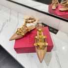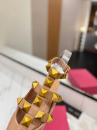VT Rockstud Sandals Flat Nude Gold Cowhide
