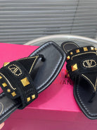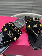 VT Rockstud Thong Sandals Black Suede 334638