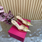 VT Slingback 8cm Gold Snake-grain Leather