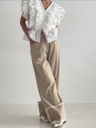 Pantalon Kaki Taille Haute à Jambes Larges