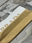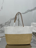 LARGE TOTE BAG 37 IN WHITE MIX BEIGE RAFFIA AND BROWN CALFSKIN HANDLE