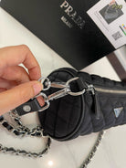 PRA CYLINDRICAL 20 BAG IN BLACK RE-NYLON SILVER HARDWARE