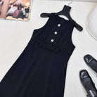 Prada 25 Diamond Button Sleeveless Vest Dress Black Cotton Polyester 598350