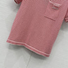 Prada 25 Striped Short-sleeved Knitted Top Red Cotton