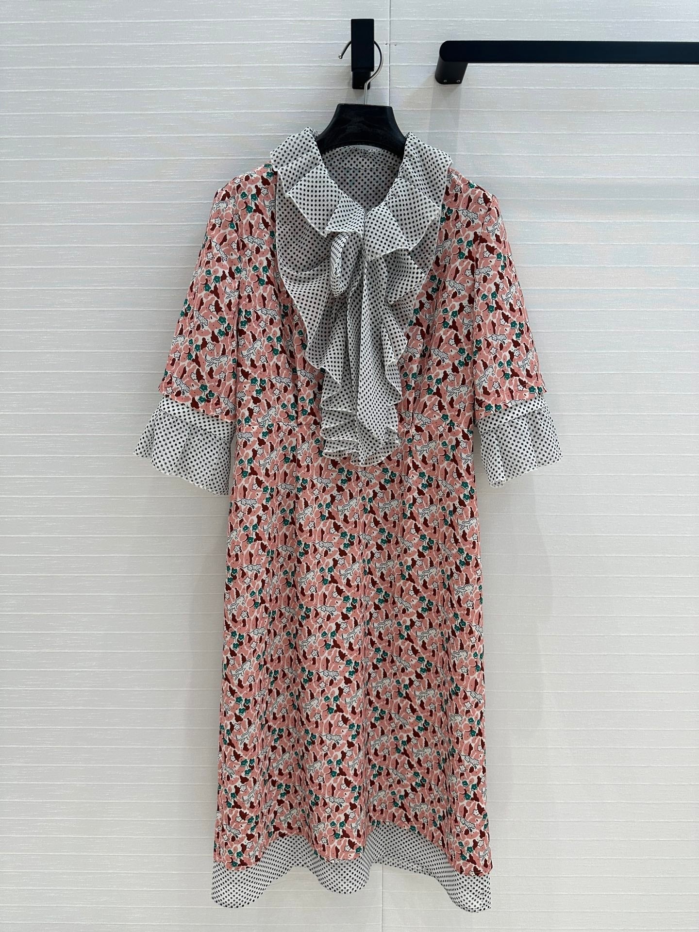 Prada Lace Half-sleeved Dress Pink mix colors Polyester