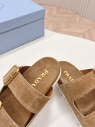 Double Buckle Strap Slides 20 Brown Suede