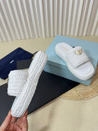 PRA CROCHET FLATFORM SLIDES WHITE RAFFIA