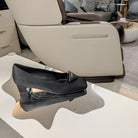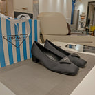 TRIANGLE LOGO PUMPS IN BLACK SATIN