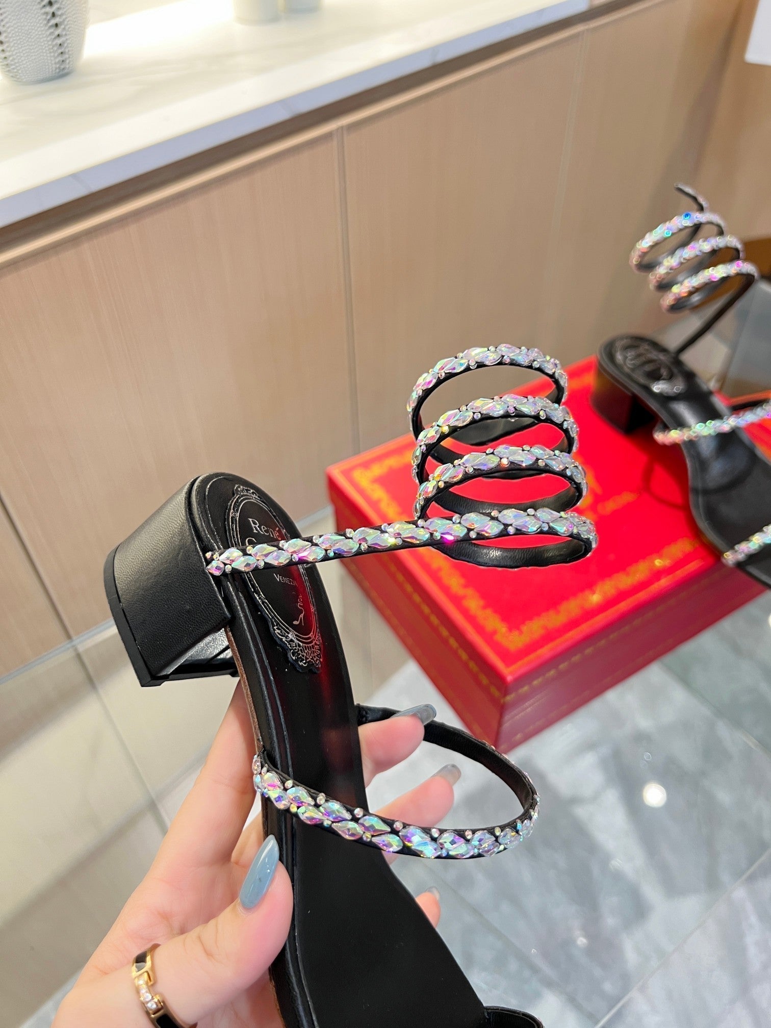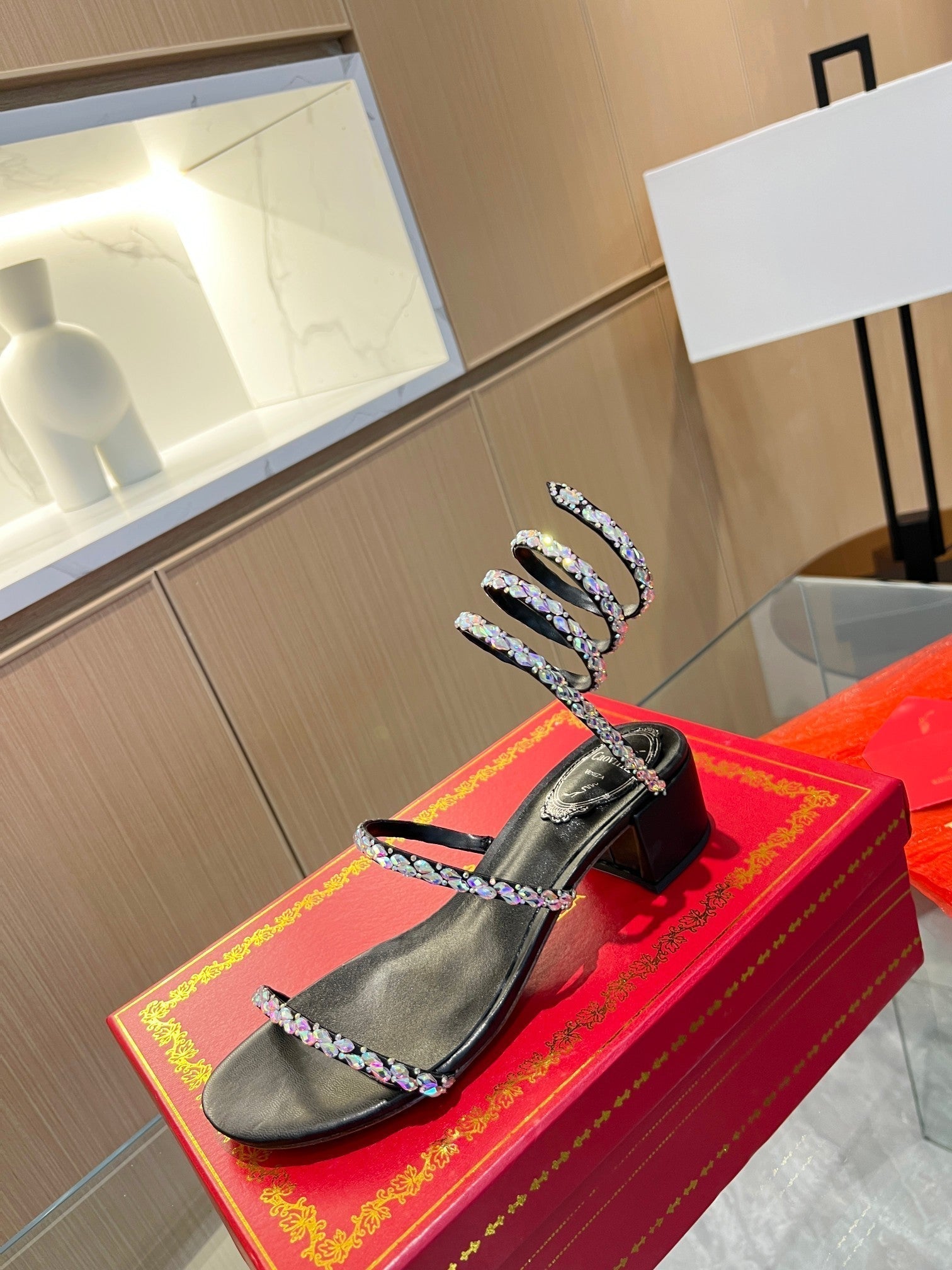 RC Diamond Sandals Black Silk Creole Glass Diamond 341983