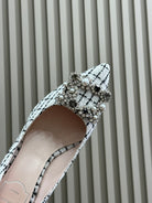 Flower Strass Buckle Pump 85 White Black Fabric