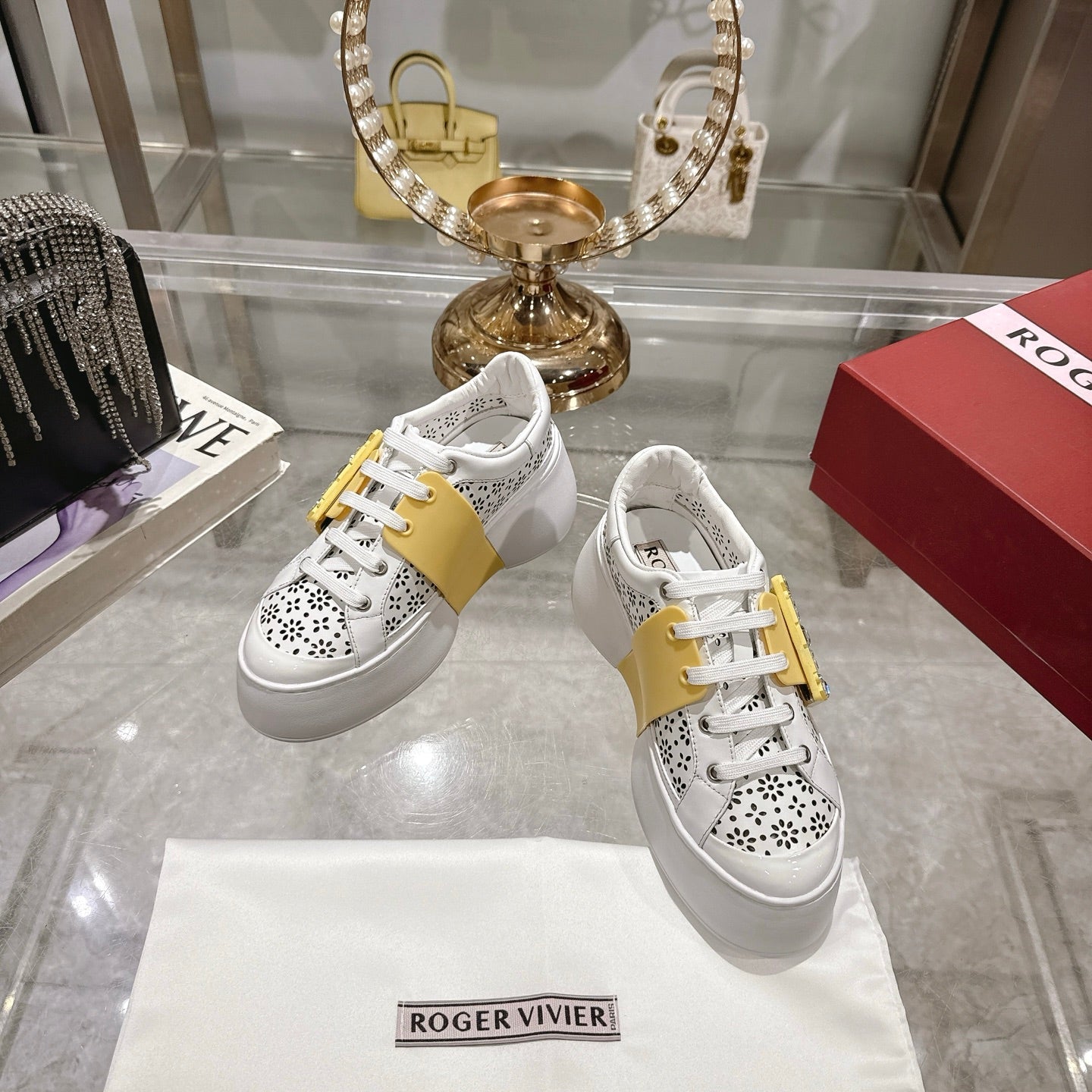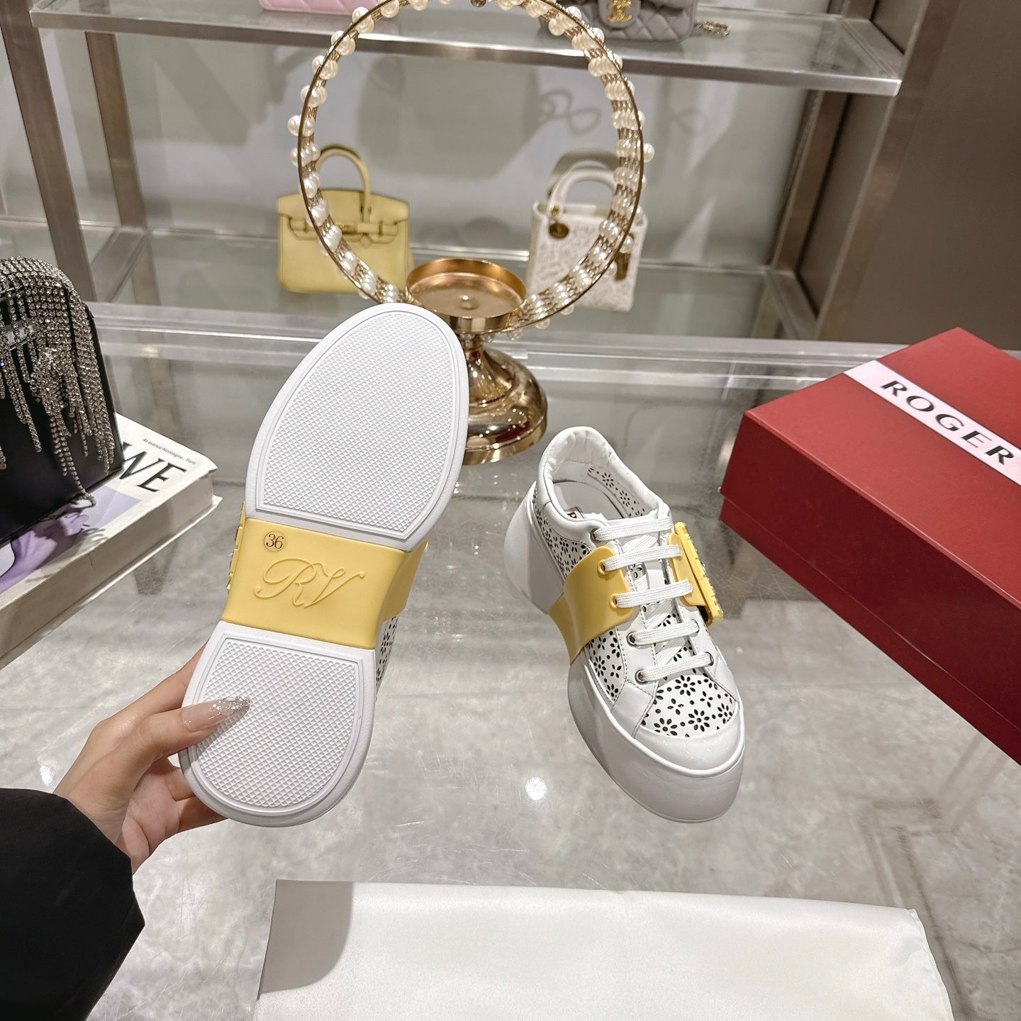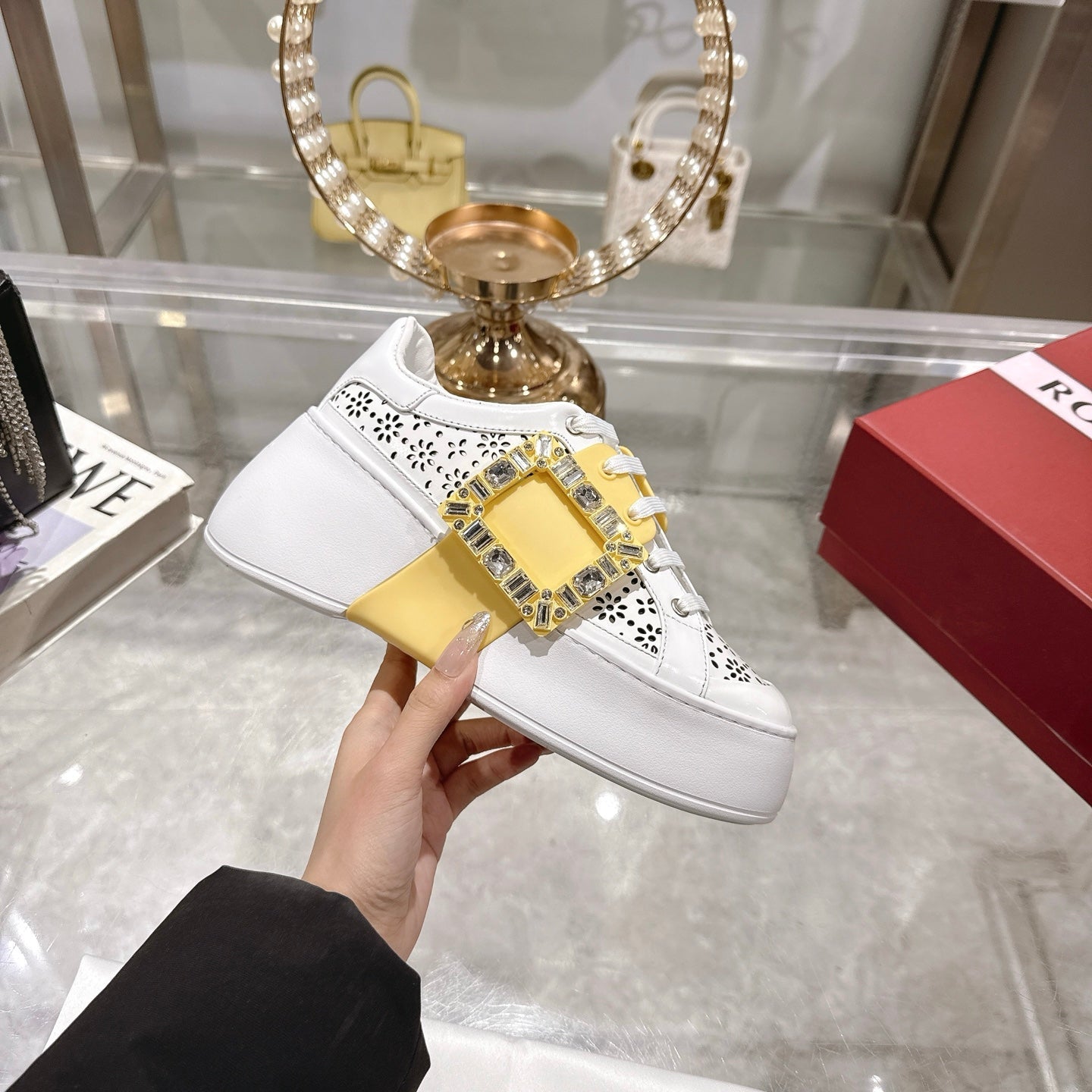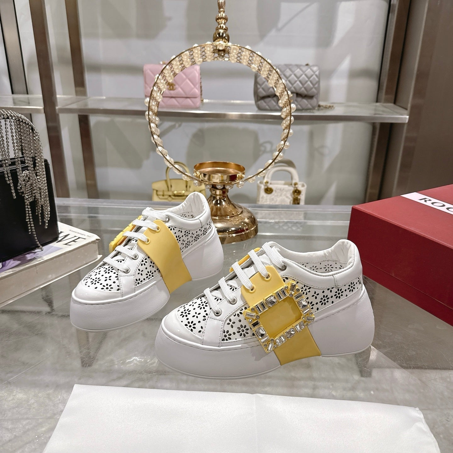 Viv 25 Square Buckle Platform White Yellow Cowhide 262976