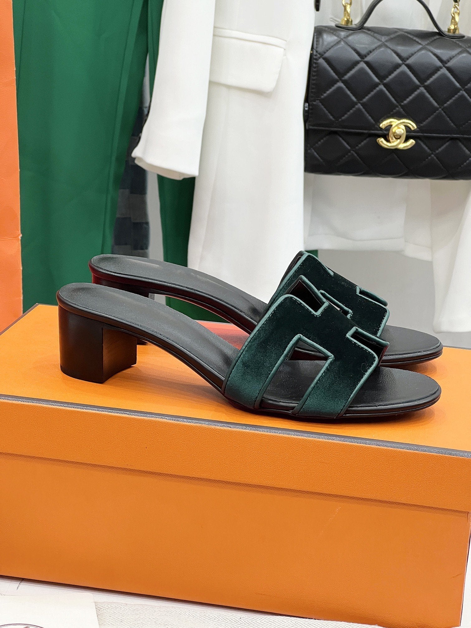 0ran 45 sandal dark green velvet goatskin