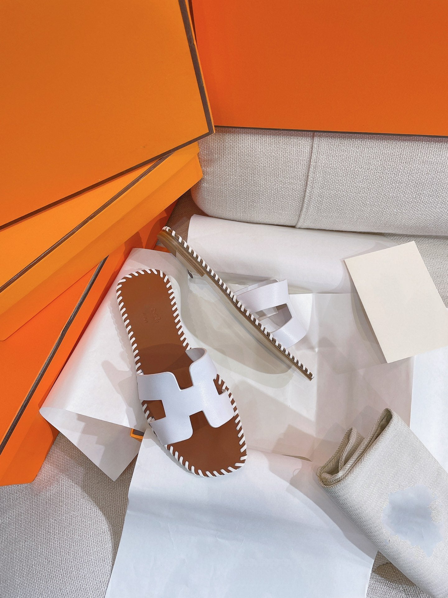 • Material: Sandal in calfskin with iconic "H" cut-out.