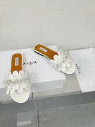 alaia sandal mule flower white pantent lambskin