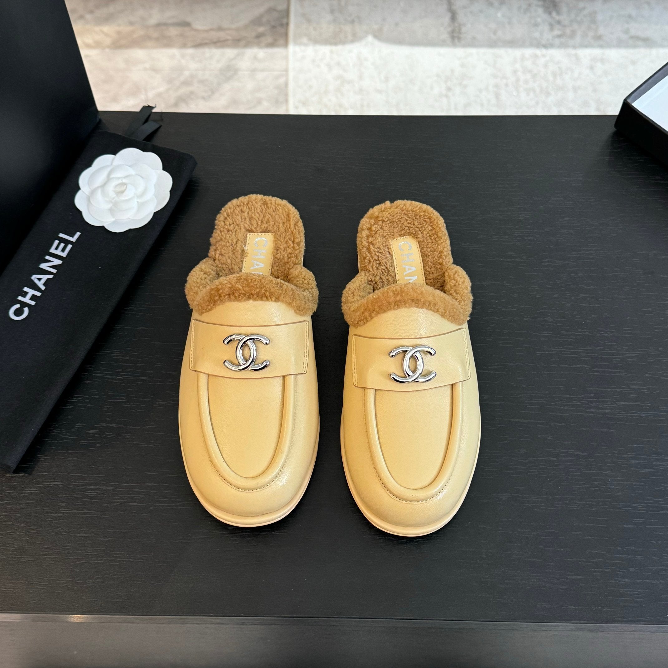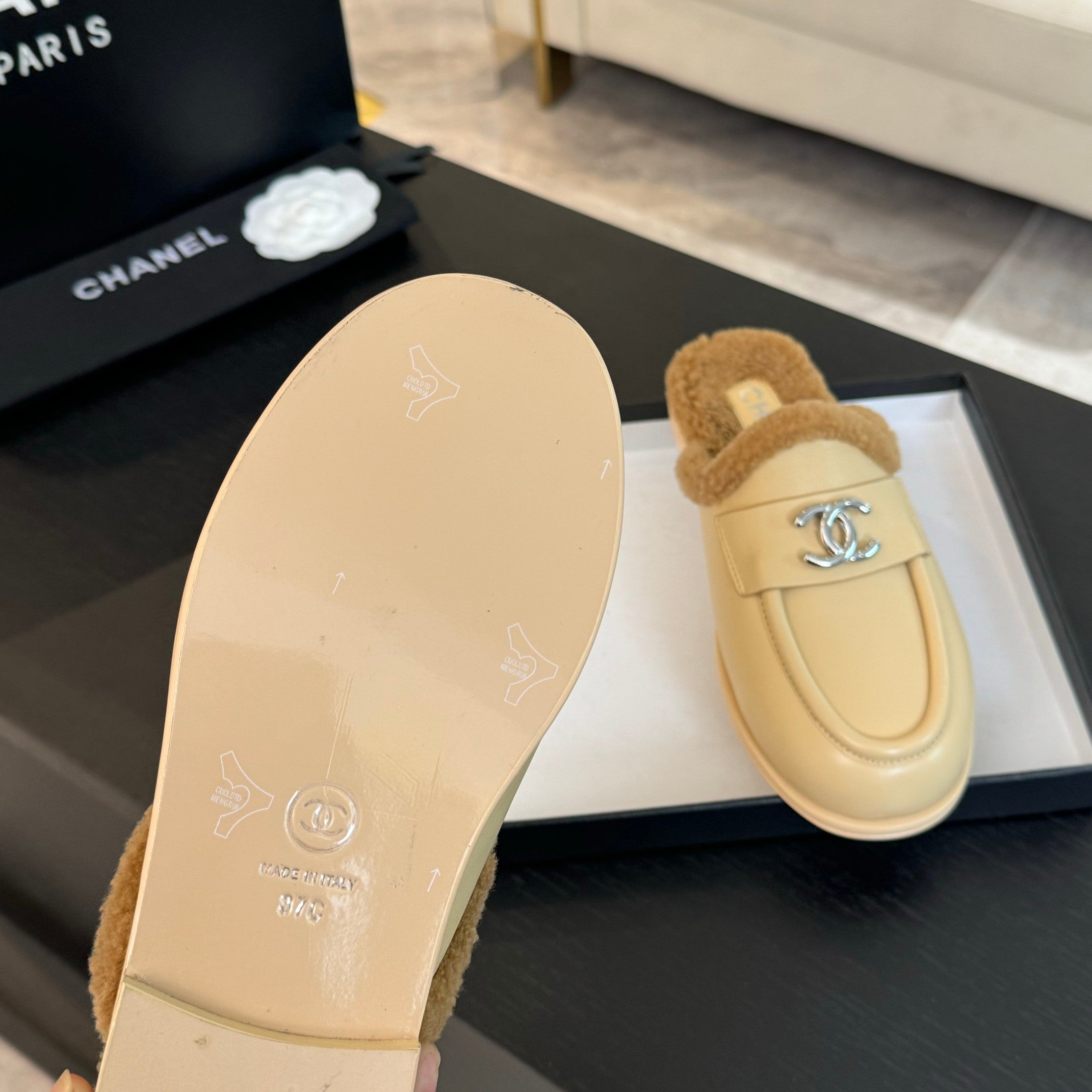 CC Mule Beige Calfskin Lamb Wool