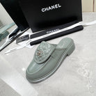 CC Mule Grey Quilted Calfskin
