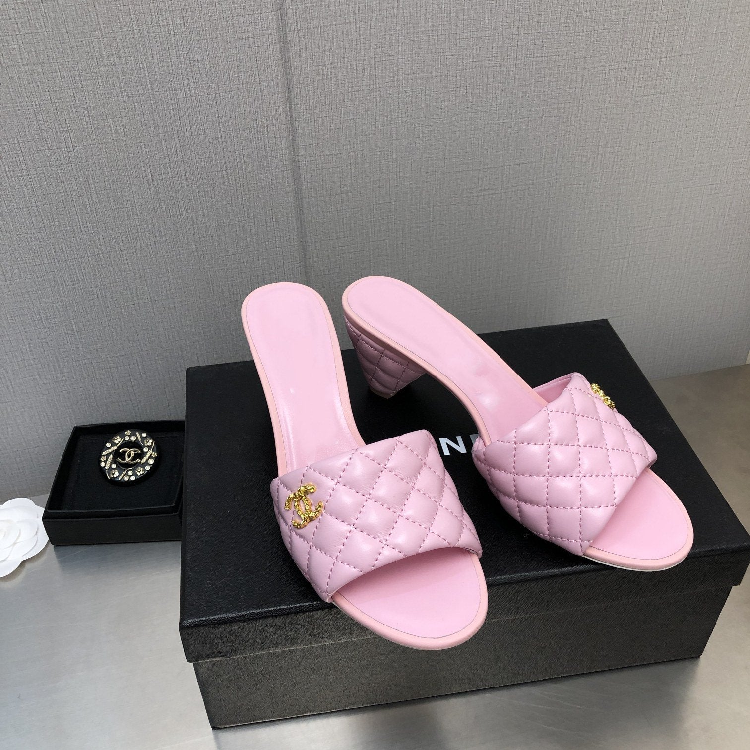 cc rev cone heel mule slide sandal pink quilted lambskin 6cm