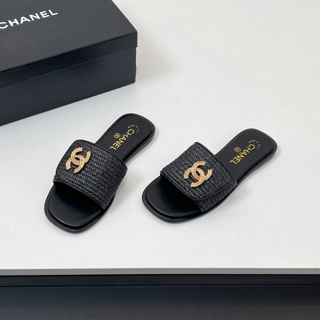 CC Slippers In Black Palm Fiber 149729