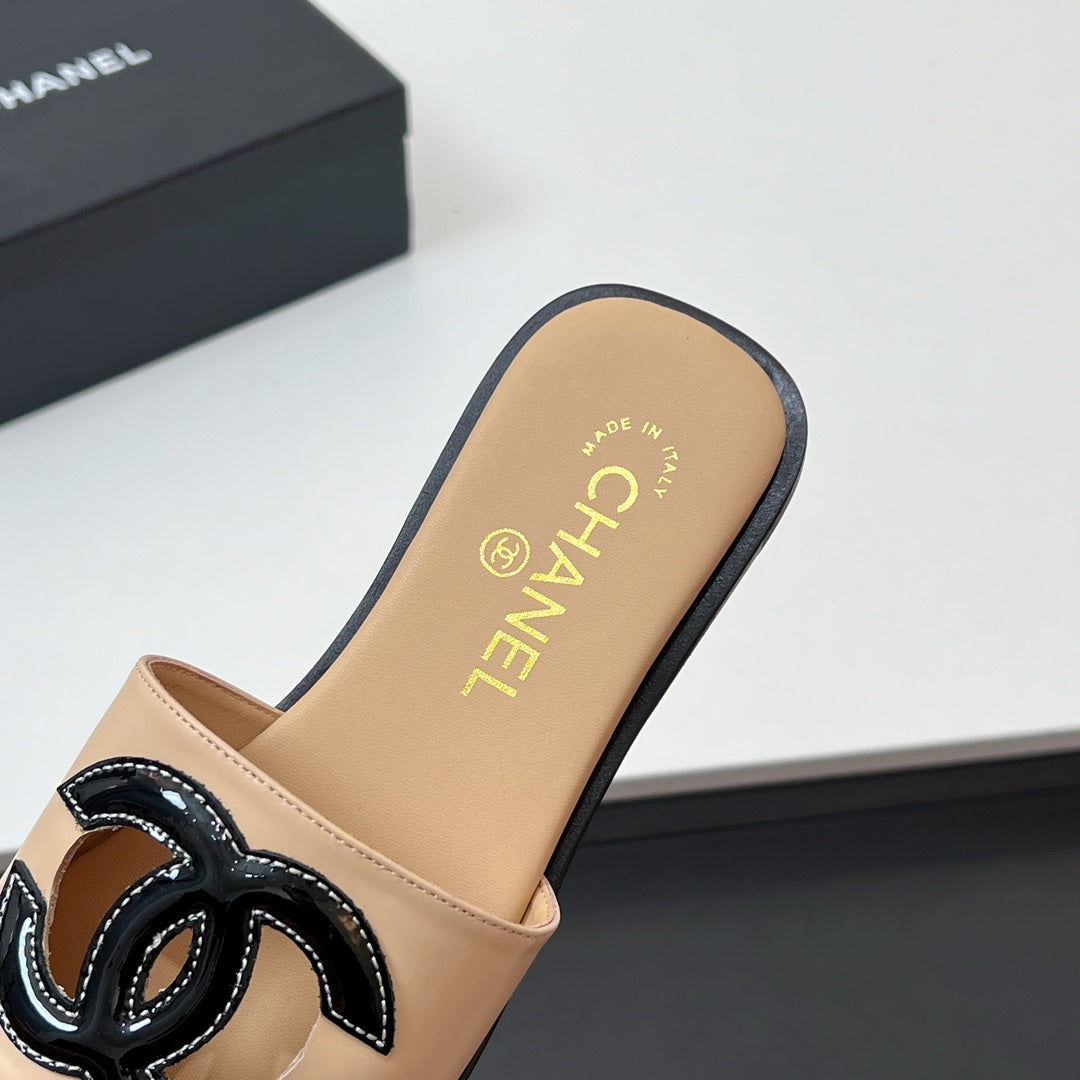 CC Slippers In Dark Beige Calfskin 149746